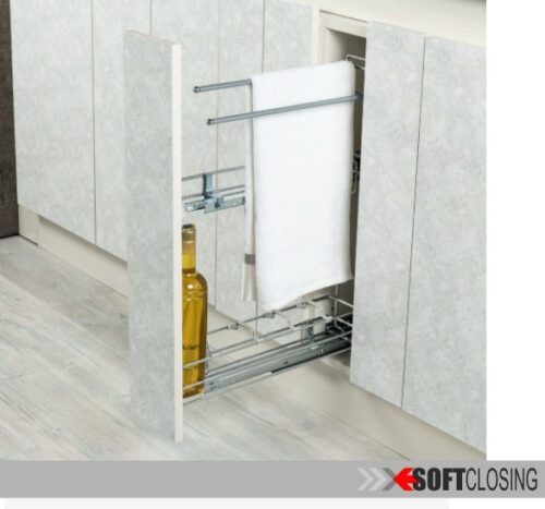 Cargo na prowadnicach tandem BLUM pełnego wysuwu z cichym domykiem.