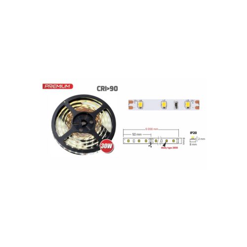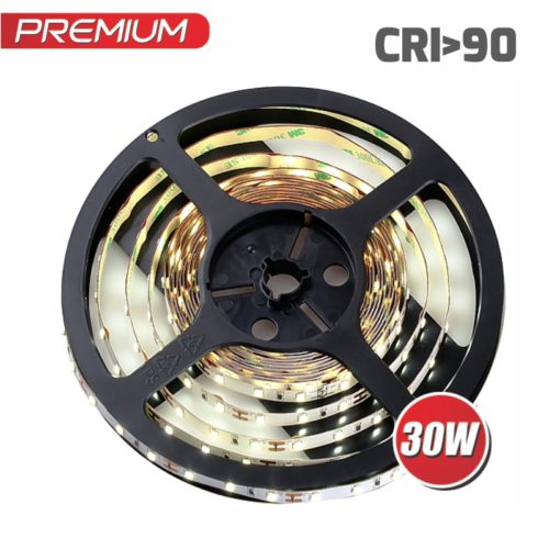 Taśma LED bez żelu 30W, długość 5m, dobrze sprawdzi się jako oświetlenie w kuchni i biurze. Taśmę można ciąć w wyznaczonych miejscach co 5 cm.