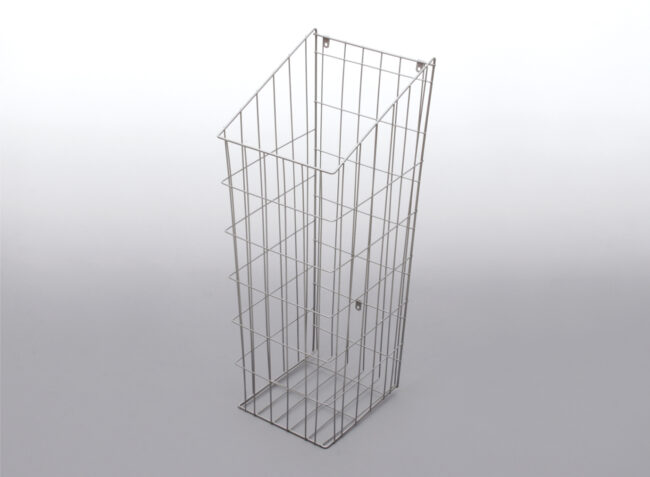 Kosz na bieliznę firmy Rejs – przeznaczony do szafki o szerokości 30 cm. Kolor – lakier biały i srebrny. Kosz na bieliznę montuje się do frontu szafki uchylnej. Wymiary kosza: Szerokość 235 mm. Głębokość 255 mm. Wysokość 600 mm.