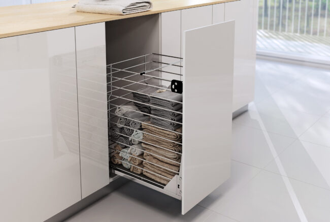 Cargo MIDI dolne Linia Maxima Classic 1200-1400 4 kosze firmy Rejs – przeznaczone do szafki o szerokości 30 cm. Kolor – kosz z dnem drucianym – do wyboru metal chrom lub lakier srebrny, stelaż dostępny tylko w kolorze lakier srebrny. Prowadnica Fulterer z pełnym wysuwem i miękkim domykiem montowane do dna korpusu. Maksymalne obciążenie kosza…