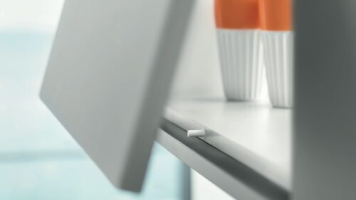 Podnośnik AVENTOS HK-S do frontów uchylnych umożliwia optymalne wykorzystanie przestrzeni do przechowywania np. nad lodówką lub szafą na zapasy. Dzięki niewielkim rozmiarom siłownik harmonijnie łączy się z małymi korpusami. Rozwiązanie jest proste w montażu i wygodne w obsłudze.