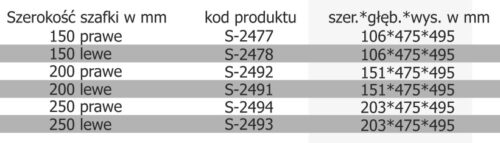 Cargo na prowadnicach tandem BLUM pełnego wysuwu z cichym domykiem. Stelaż w kolorze szarym.