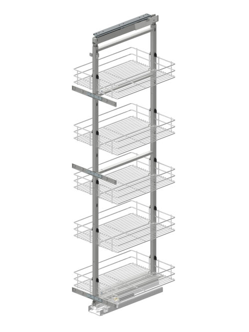 Regulowana wysokość stelaża wpływa na optymalne wykorzystanie wysokości szafki.