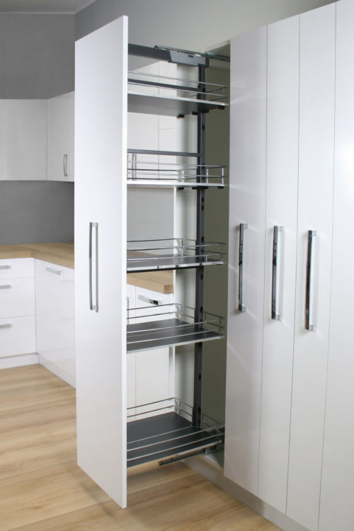 Regulowana wysokość stelaża wpływa na optymalne wykorzystanie wysokości szafki.