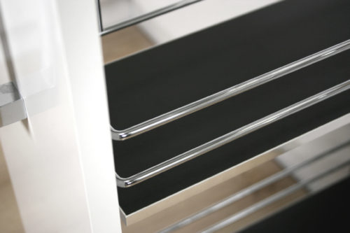 Kolor – stelarz grafitowy, półki metalowe chromowane a dno z płyty w kolorze grafitowym.