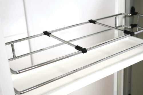 Regulowana wysokość stelaża wpływa na optymalne wykorzystanie wysokości szafki.