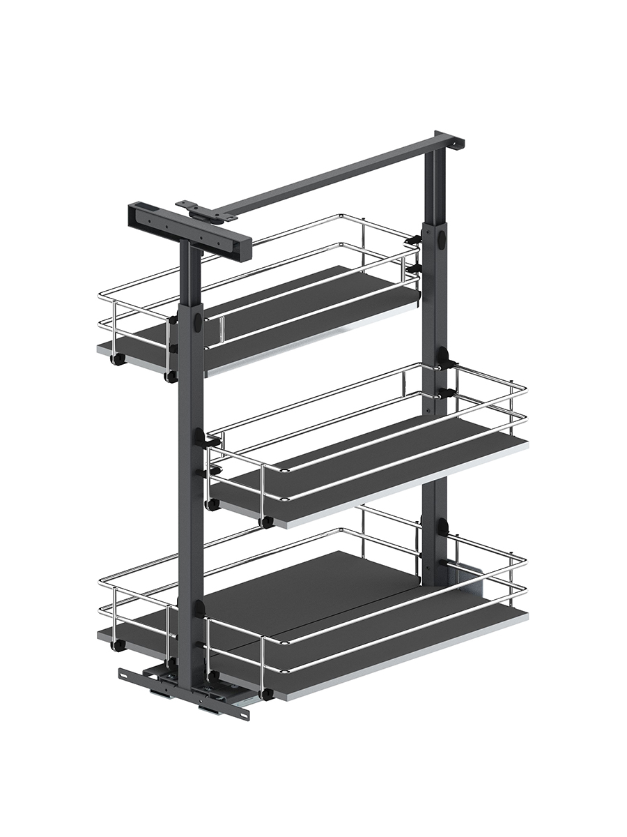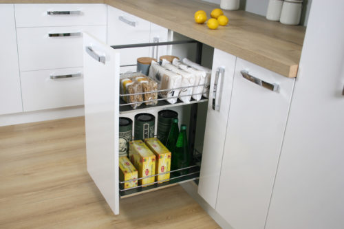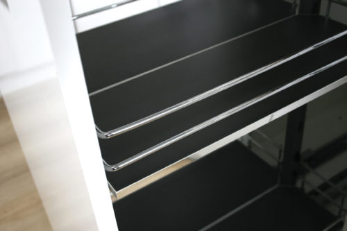 Regulowana wysokość stelaża wpływa na optymalne wykorzystanie wysokości szafki.
