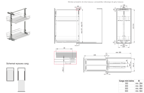 Cargo mini dolne Linia Maxima SILVA firmy Rejs – przeznaczone do szafki o szerokości 60 cm – 2 poziomowe.
