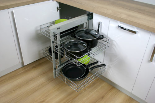 Systemy classic corner przeznaczone do szafek narożnych dolnych. Dzięki zastosowaniu specjalistycznego systemu umożliwia dotarcie do tylniej części szafki. Łatwy montaż, stelaż montowany do dna korpusu.