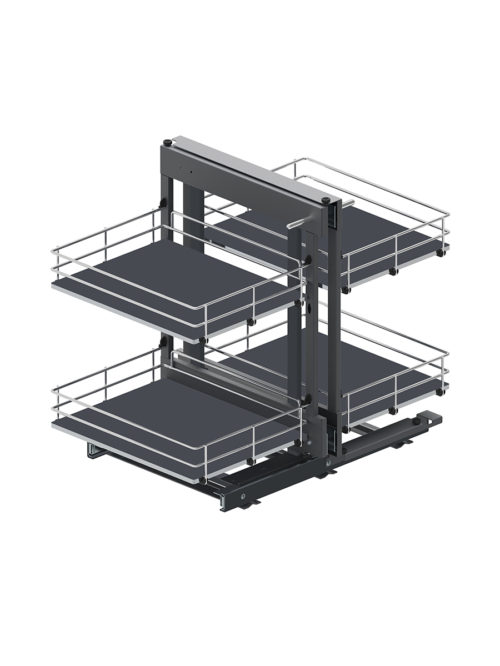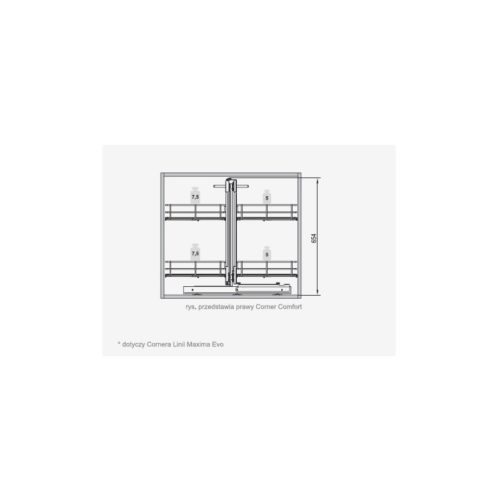 Systemy corner comfort przeznaczone do szafek narożnych dolnych. Dzięki zastosowaniu specjalistycznego systemu umożliwia dotarcie do tylniej części szafki. Łatwy montaż, stelaż montowany do dna korpusu.