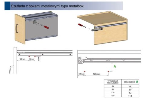 Dociąg do metalboxu- uniwersalny spowalniacz do szuflad typu metalbox wszystkich producentów. Dzięki szerokości konstrukcji wynoszącej tylko 11mm mieści się on pomiędzy szufladą a korpusem mebla i może zostać zamontowany nawet w istniejących już meblach, które pierwotnie nie były wyposażone w tego typu rozwiązanie.