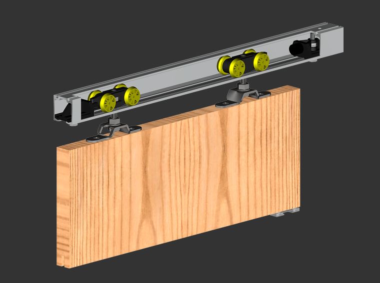 Herkules 60– uniwersalny system do drzwi przejściowych przesuwnych o ciężarze skrzydła max 60 kg i grubość drzwi min 16 mm,. Kompletny zestaw do montażu drzwi, potrzebujemy dokupić szynę Herkules i opcjonalnie klamrę do szyny Herkules.