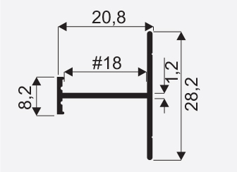 Łącznik   H08/18  przeznaczony do łączenia płyt laminowanych 18 mm, płyt 12 mm + lustro 4 mm. Zastosowanie: do skrzydeł drzwi przesuwnych, składanych, rozwieranych w systemach zabudowy wnęk, garderoby, drzwi przejściowych.