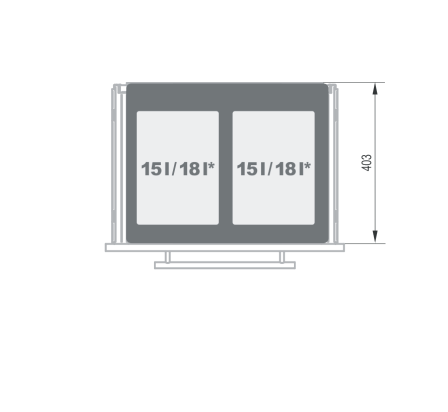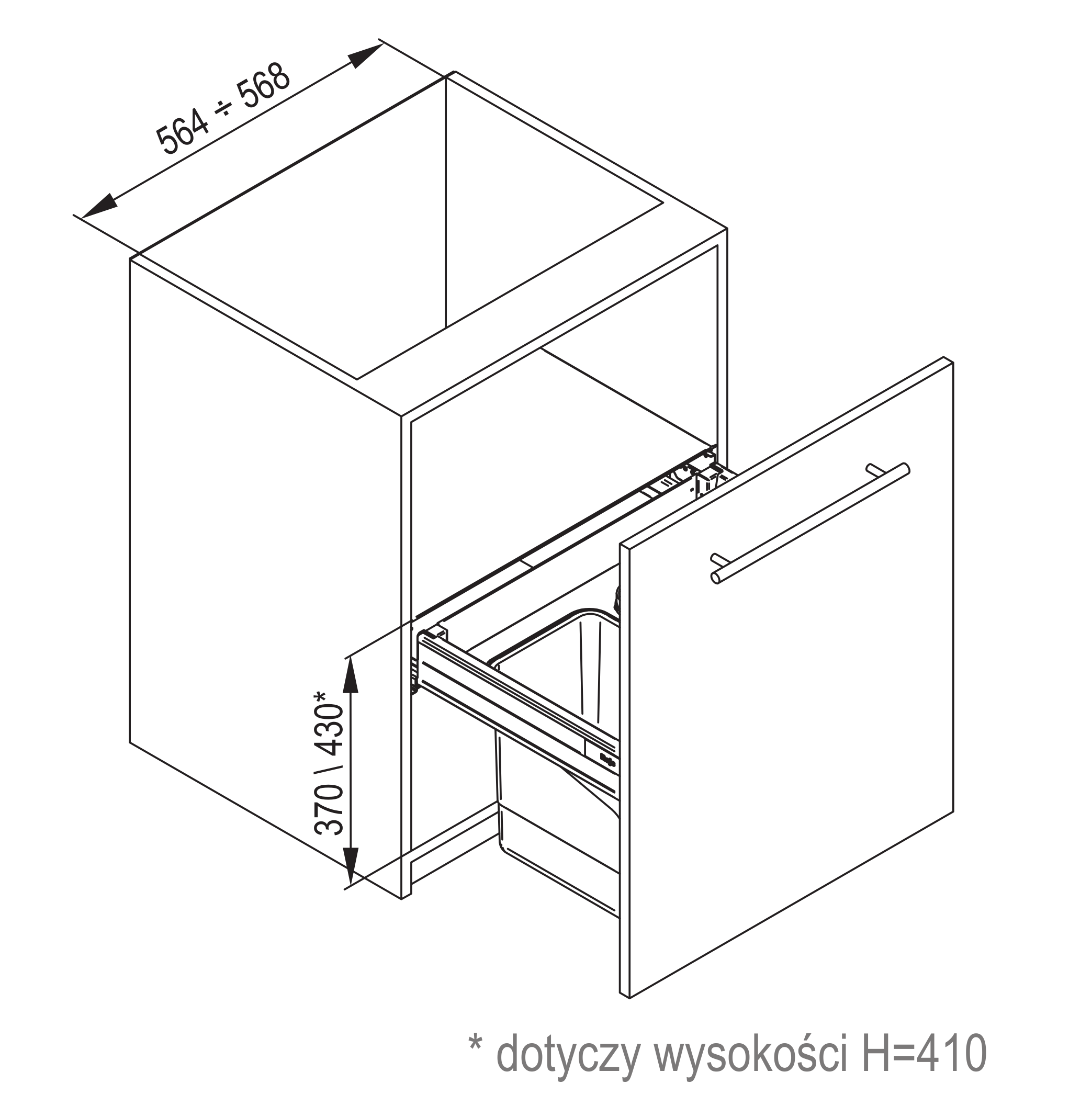 Pojemność wiader – 2 x 15 l przy wysokości H=350 mm lub 2 x 18 l przy wysokości H=410 mm.
