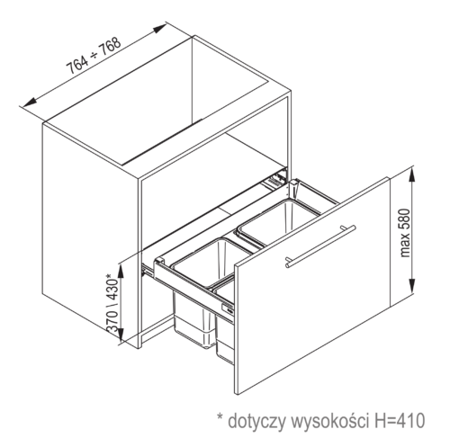 Wysokość frontu max. 580 mm.