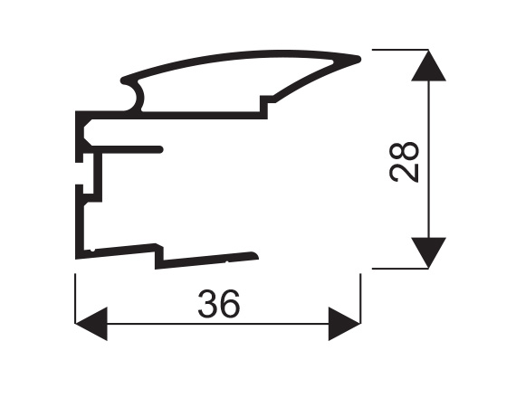 Rączka Alfa II do drzwi przesuwnych, przeznaczona do zastosowania w systemach zabudowy wnęk, garderobach, drzwiach przejściowych z płyty.