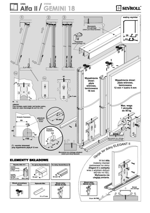 - wózek dolny wd18V HI-TEC lub wd18C HI-TEC (do wybory w zależności od wybranego toru dolnego) 6 szt,