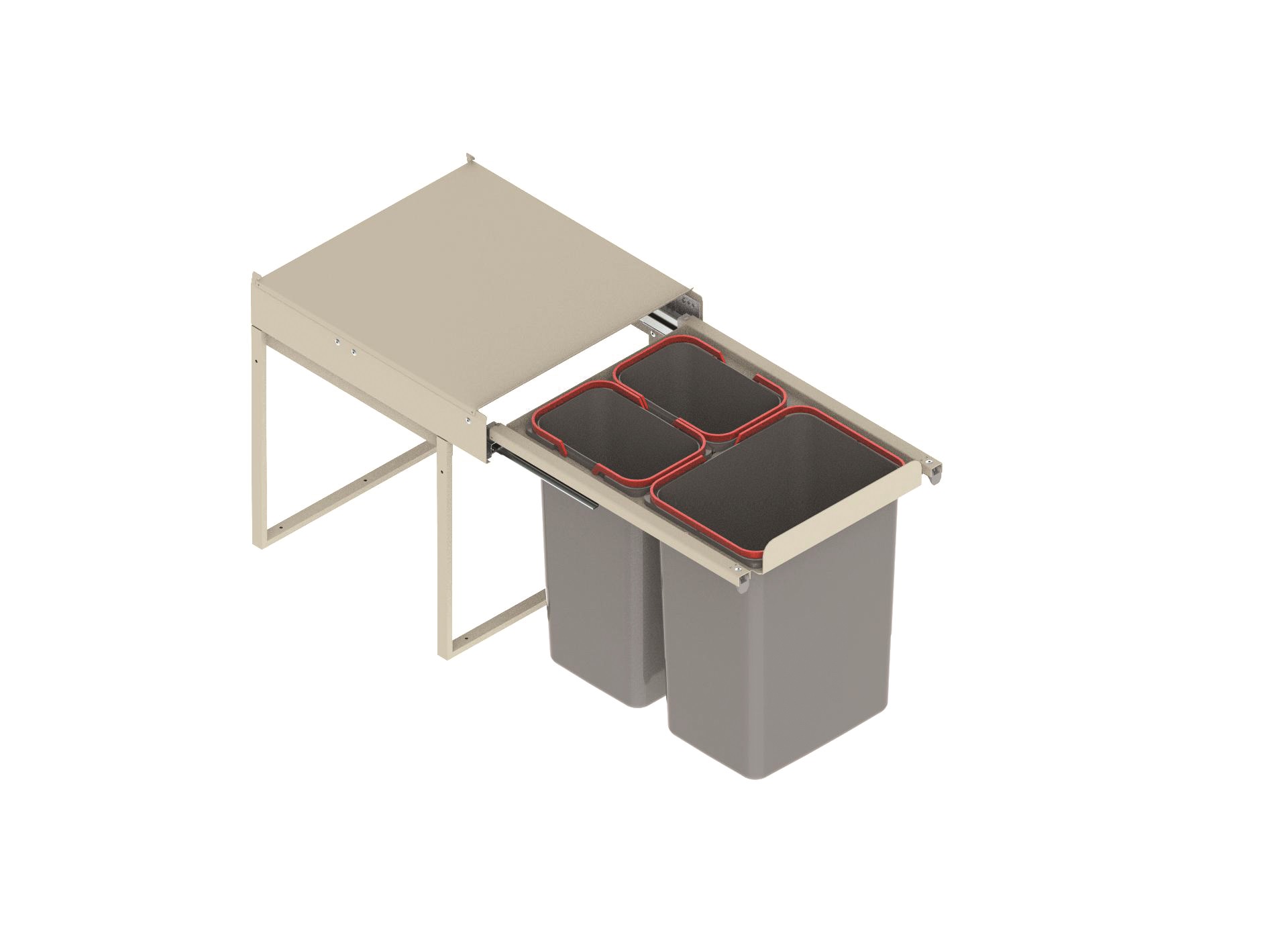 Pojemnik na odpady wysoki z mocowaniem frontu lub bez, potrójny z pokrywą.