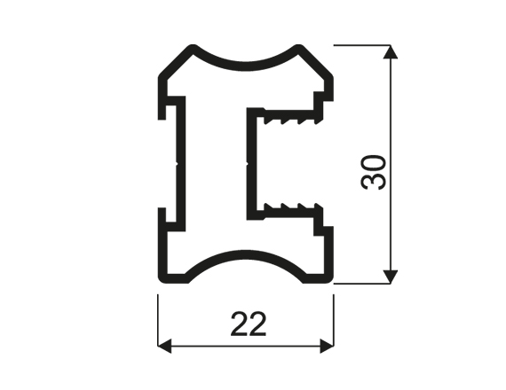 Rączka Julia II, przeznaczona do drzwi przesuwnych, w systemach zabudowy wnęk, garderobach, drzwiach przejściowych z płyty laminowanej 10 mm, lustra lub szkła lacobel.