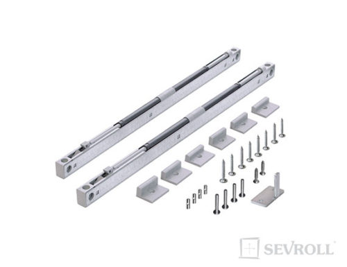 Sevromatic Top przeznaczony w systemach zabudowy wnęk, garderobach, drzwiach przesuwnych. Jest to zestaw dwóch samodomykaczy, i kompletu zaczepów. Rozmiar zaczepu dobieramy po wyregulowaniu skrzydła drzwi.