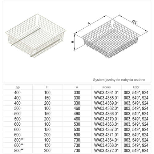 Wymiary kosza: