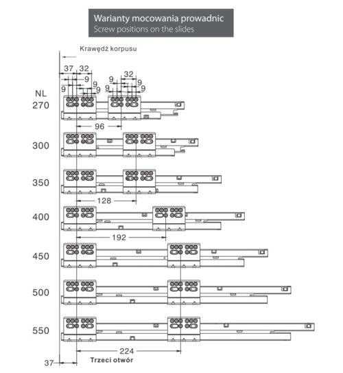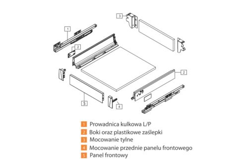 – dwie prowadnice z funkcją dociągu oraz cichego domyku