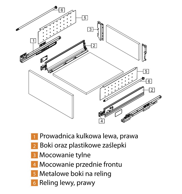 – dwa metalowe boki o wysokości 84,5 mm w kolorze szarym lub białym
