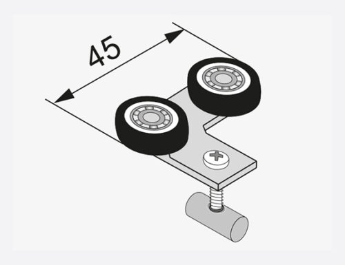 Wózek górny Future przeznaczony do drzwi przesuwnych, w systemach zabudowy wnęk, garderobach, drzwiach przejściowych zpłyty laminowanej 10 mm, lustra lub szyby. Zastosowanie – do toru górnego Comfort – Decor.