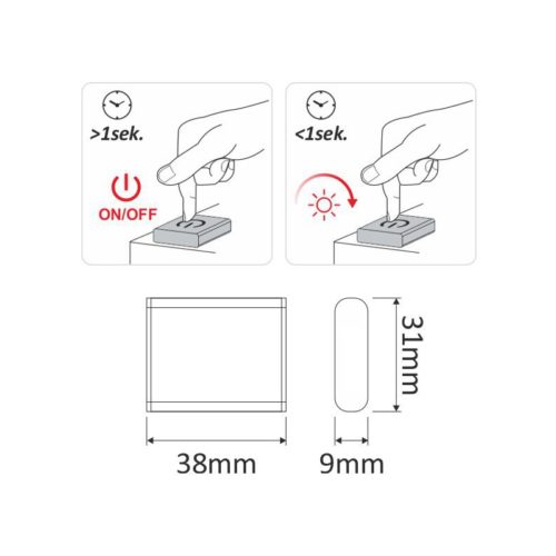 Wyłącznik dotykowy TOUCH z funkcją ściemniania. Krótki dotyk włącza/ wyłącza oświetlenie LED, a długi uruchamia funkcję ściemniania. Producent Design Light.
