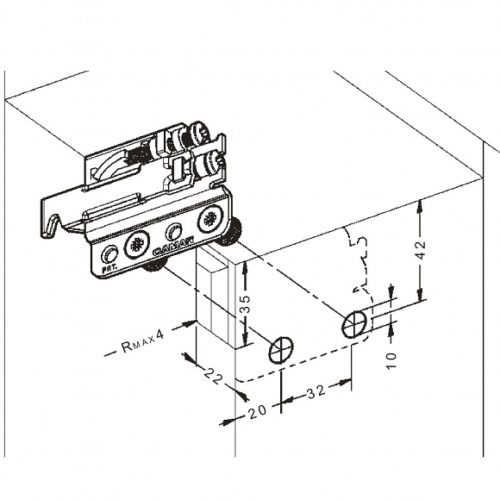 Zawieszka meblowa włoskiej firmy CAMAR 801 mała kompletna z szyną montażową i białą zaślepką. Nośność 100kg na parę wykonana z wysokiej jakości metalu z zamontowanymi 4 dyblami o średnicy 10 mm, oraz dwoma miejscami na dodatkowe wkręty. Zawieszka jest bardzo łatwa w montażu. Do ściennej płytki montażowej należy dosunąć szafkę z zamontowaną zawieszką. W momencie dociśnięcia, poprzez zatrzask, następuje zawieszenie mebla. Aby zdemontować zawieszkę należy nacisnąć na sprężynę listwową w ściennej płytce montażowej.