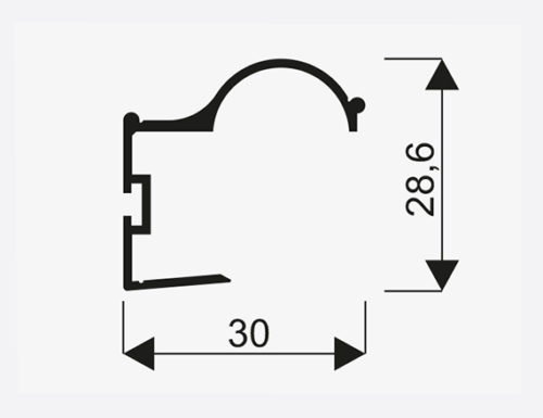 Rączka Factor 18 II „C” przeznaczona do drzwi przesuwnych w systemach zabudowy wnęk, garderobach, drzwiach przejściowych z płyty.