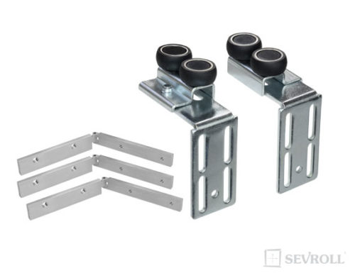 Zestaw ZE-FOX II firmy Sevroll – to komplet wózków do jednego skrzydła drzwi zbudowanych z płyty laminowanej 10 mm, lustra lub szkła.