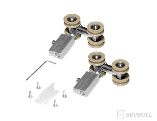 Zestaw ZPE-10 /Exclusive/  firmy Sevroll – to  komplet wózków z prowadnikiem  do drzwi podwieszanych wykonanych z płyty laminowanej 10 mm, lustra lub szkła.