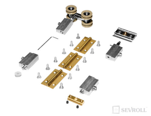 Zestaw ZSE-10 /Exclusive/ firmy Sevroll – to komplet wózków z zawiasami do drzwi składanych wykonanych z płyty laminowanej 10 mm,szyby 4,5 mm, lub lustra 4 mm.